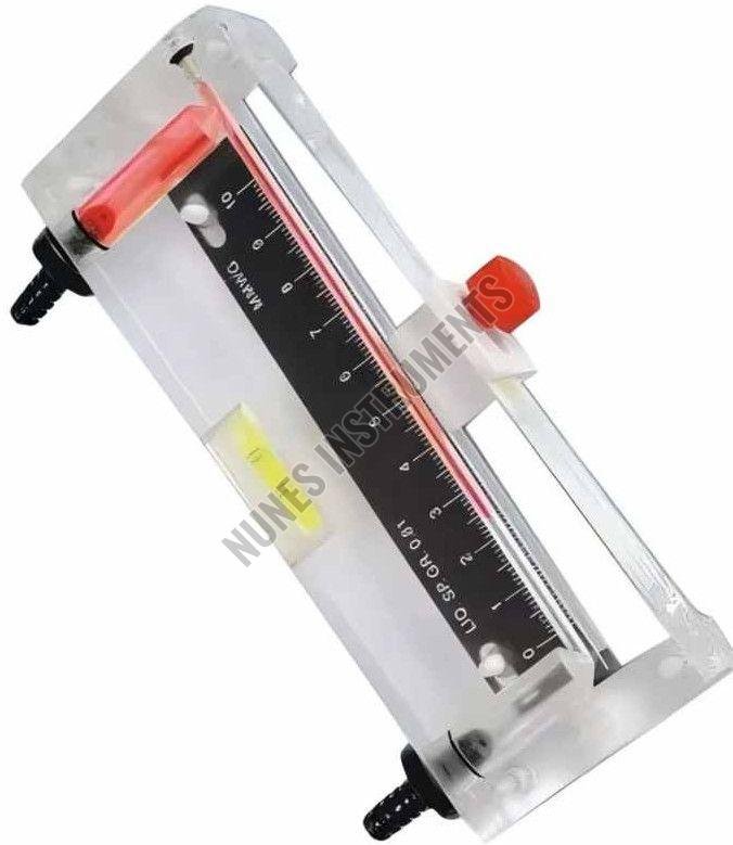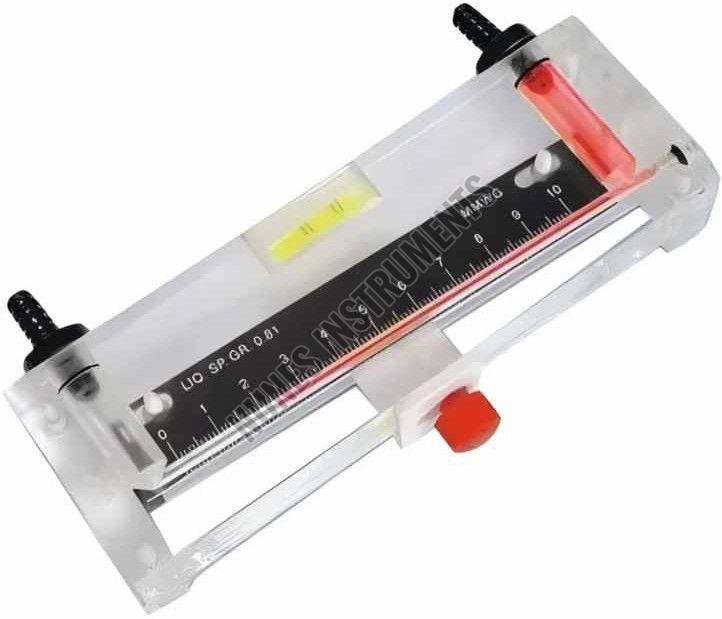 The Incline Manometer is a precision instrument used for low-pressure differential measurement in laboratory and industrial setups. It features a U-tube design mounted on an aluminum base plate, with a precision-drilled metering tube through a solid acrylic block, ensuring durability and clear visibility.