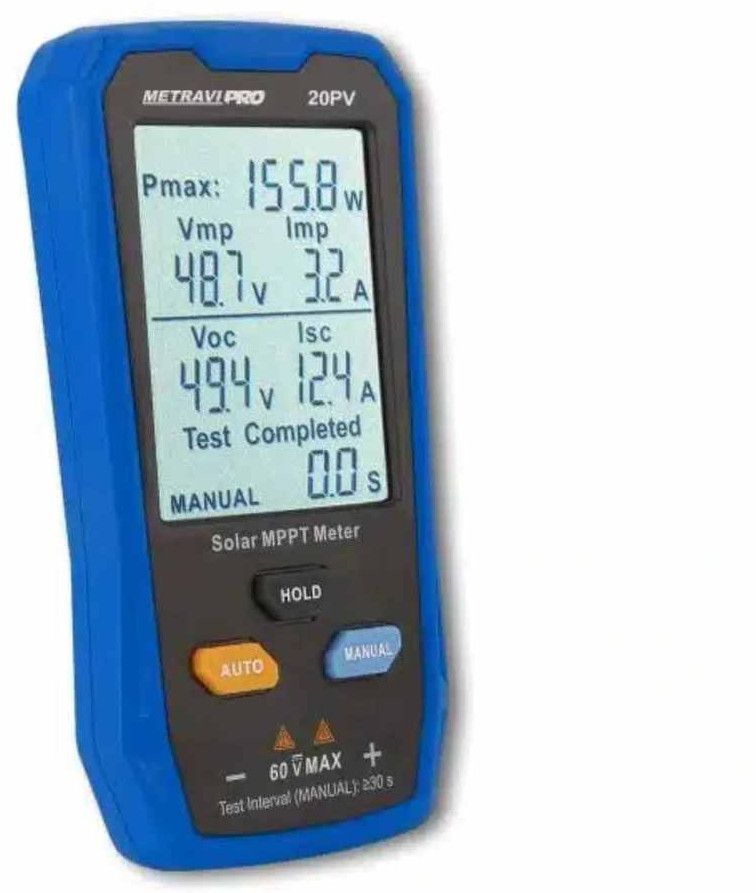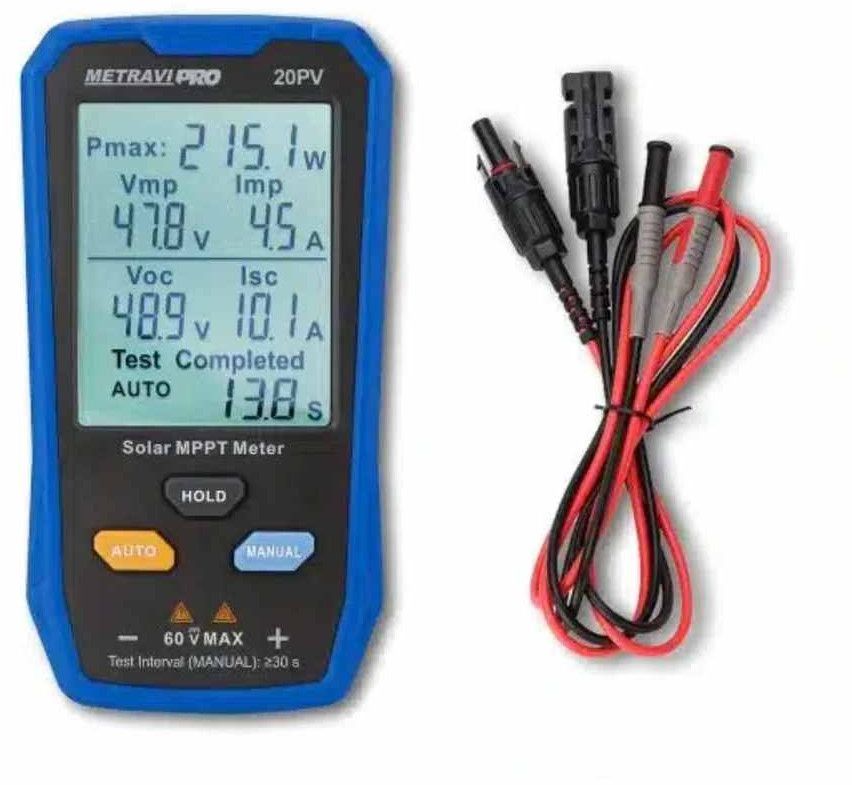 The V- TECH Pro 20PV Solar MPPT Meter can effectively identify any abnormalities in solar panels by testing their Maximum Power, Peak Power Voltage, Peak Power Current, Open Circuit Voltage, and Short Circuit Current.